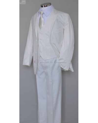 Bel ensemble de cérémonie 3 pièces couleur écru uni, vêtement de cortège enfant adapté à tous types de cérémonie.