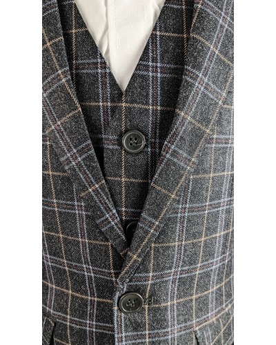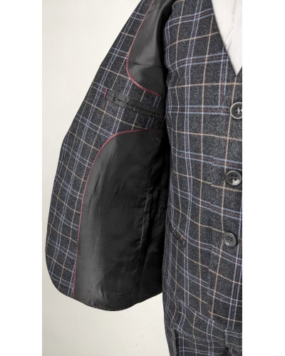Costume gris foncé garçon, modèle Brian, à grand carreaux, adapté mariage ou tout autre évènement bien habillé : tailles disponibles de 18 mois à 14 ans.