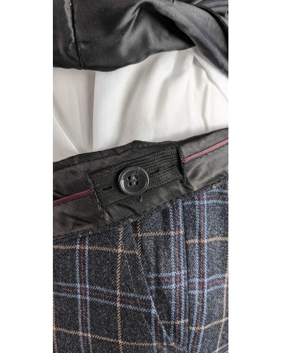 - veste 1 bouton avec poches, 1 fente à l'arrière, tissu à grand carreaux, effet bleuté de part les rayures bleues