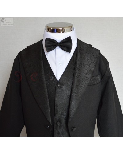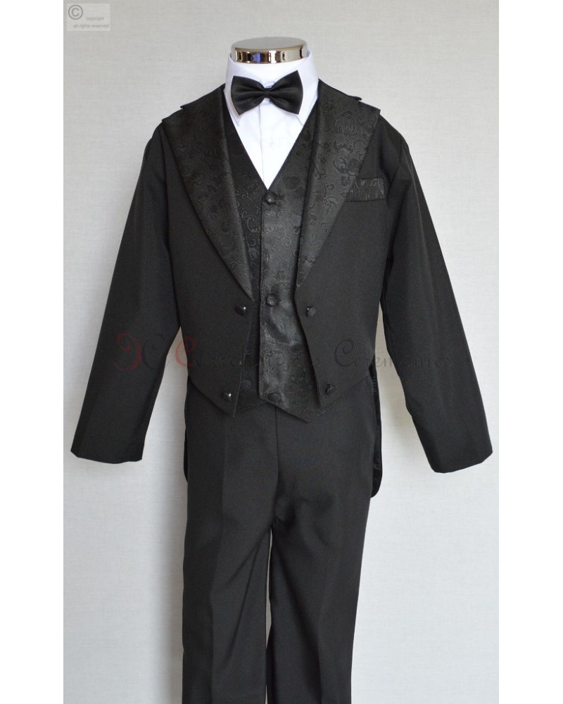 Bel ensemble 5 pièces queue de pie noir, bénéficiez toujours à prix mini d'un costume de qualité soigneusement sélectionné pour votre spécialiste de la cérémonie, taille disponible de 1 ans à 4 ans.