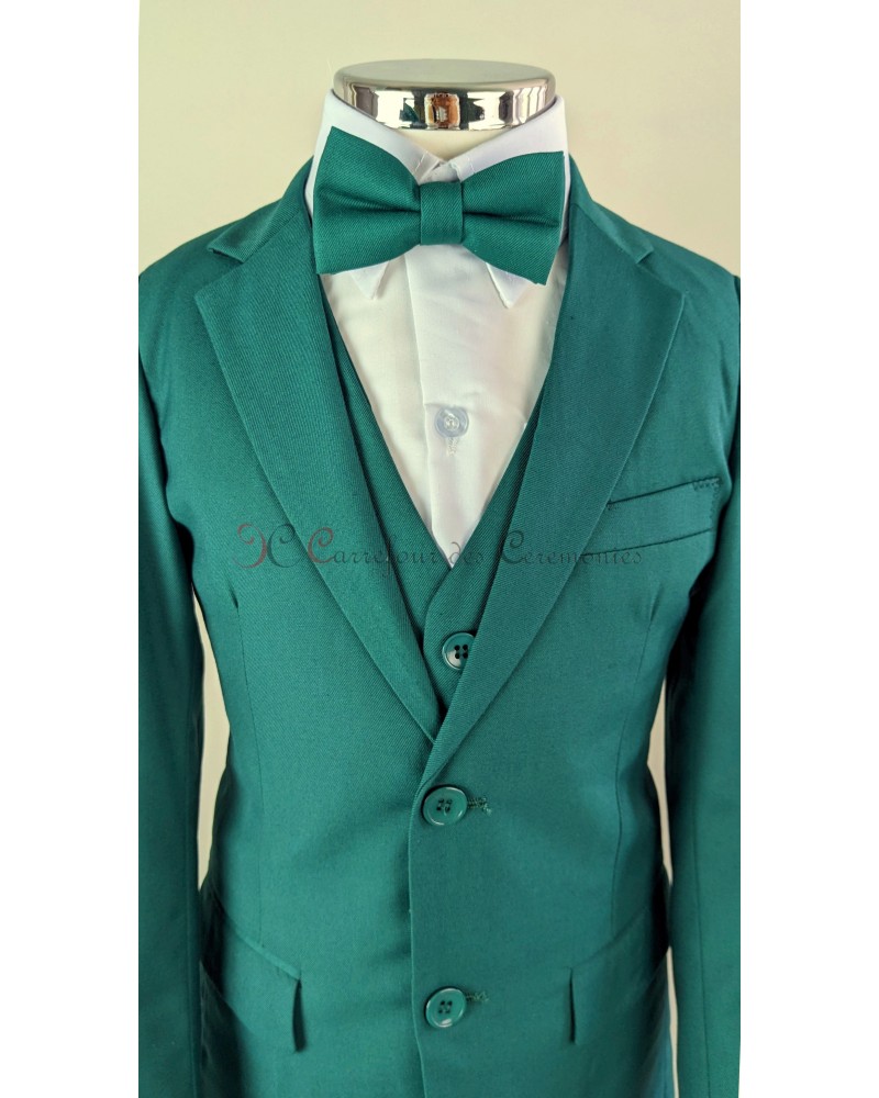 Costume ceremonie enfant 5 pièces couleur vert émeraude, il est composé :