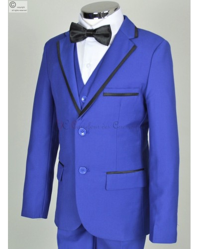 Vendu en 3 pièces bleu roi tissu mat, ce vêtement de cérémonie enfant se compose :
