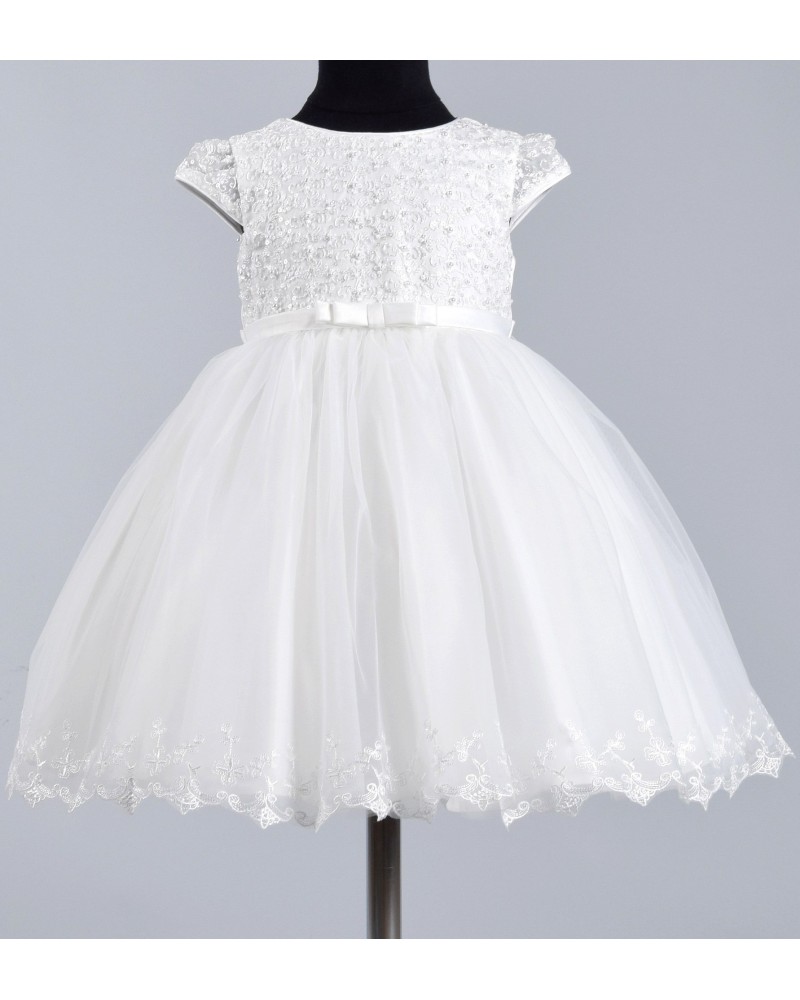 Une robe cérémonie bebe parfaite pour votre fille. Grâce à sa coupe simple et ses détails soignés, elle est idéale pour toutes les grandes occasions: mariage, communion, anniversaire, soirée. Modèle bébé disponible de 3 mois à 23 mois
